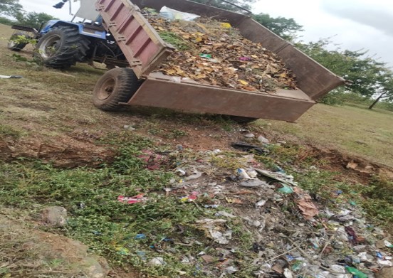 मौजे ढवळेश्वर ग्रामपंचायत गावातील सर्व घनकचरा हा ट्रक्टर ट्रोली व हातगाडीचा द्वारे एकत्रीत करून गावाबाहेर वाहून नेऊन मोठ्या खड्ड्यामध्ये साठविला जातो.